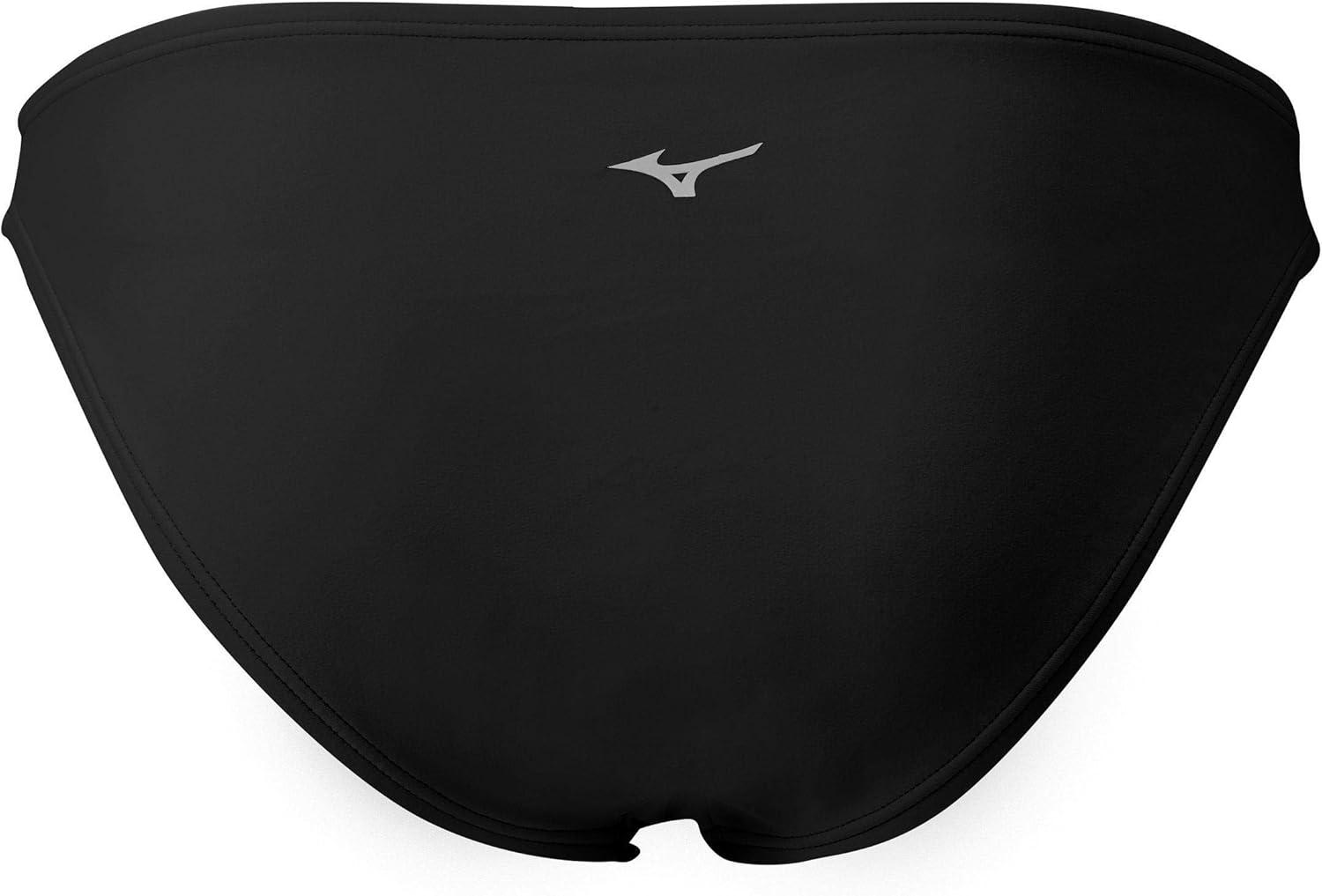 Unique angled inset at left hip. Wear-tested and approved by beach National team players. Full coverage bottoms. Athletic fit. Mizuno Runbird logo on front. Runbird logo on back. Tear-away care and label content.