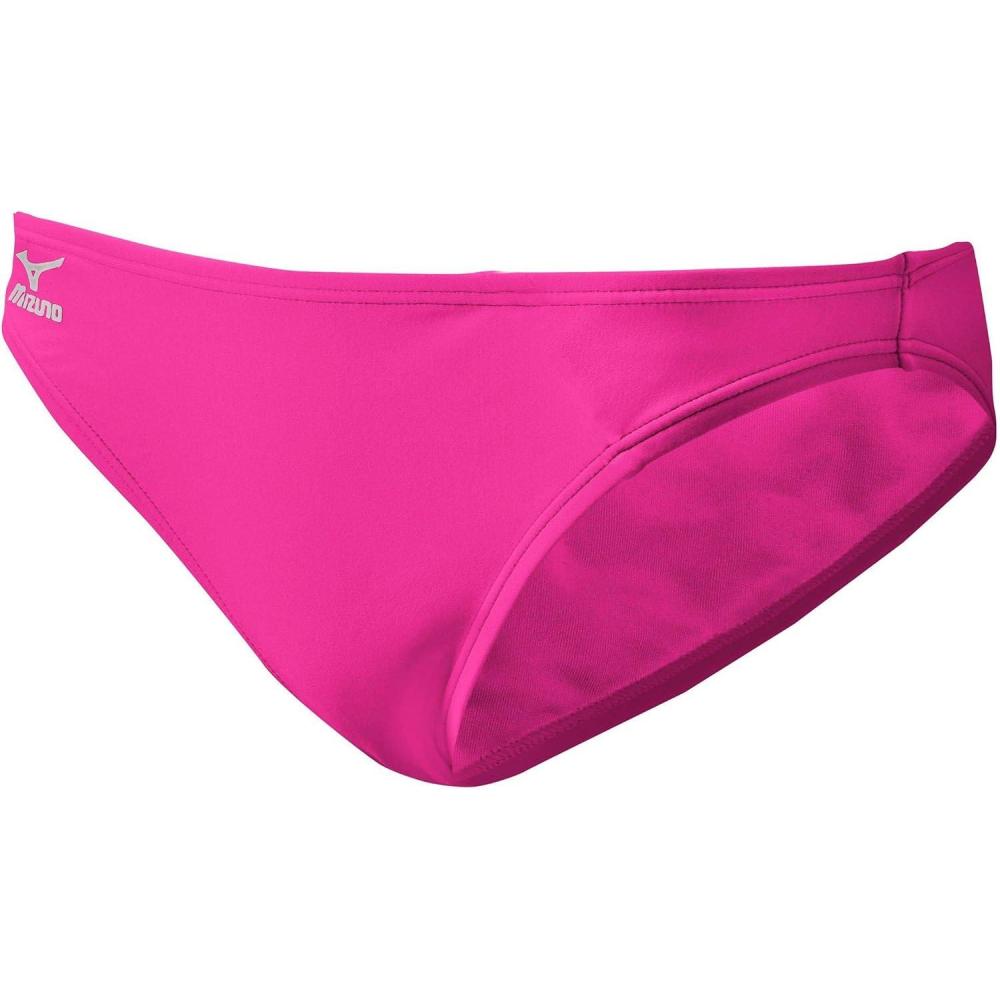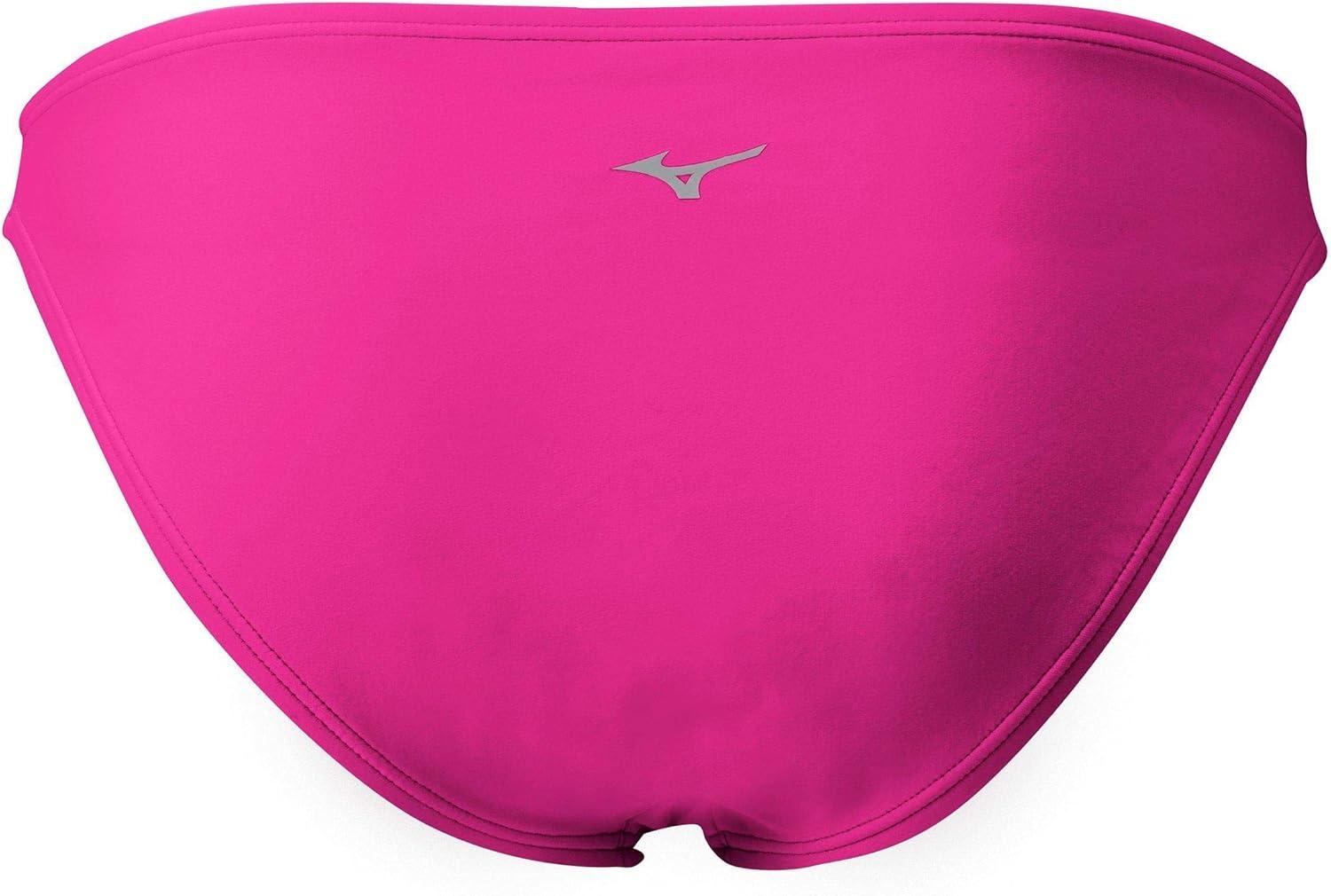 Unique angled inset at left hip. Wear-tested and approved by beach National team players. Full coverage bottoms. Athletic fit. Mizuno Runbird logo on front. Runbird logo on back. Tear-away care and label content.
